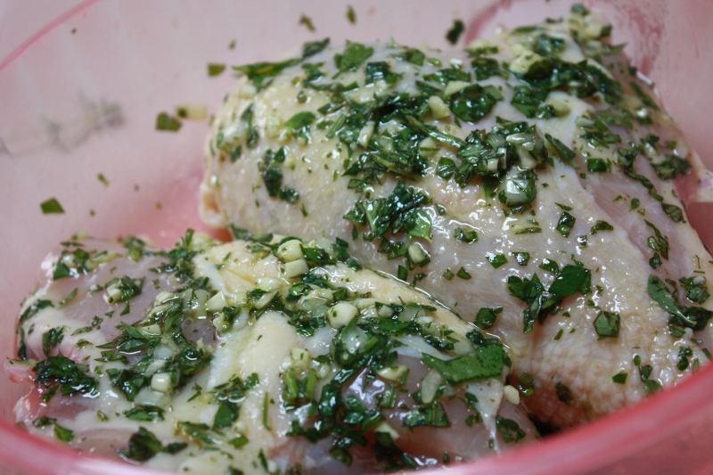 Today my first attempt is to do something with chicken breast , i thought , let’s make a paste , made from all the fresh herbs i grow in my garden . I decided to get thyme , oregano , parsley , basil and rosemary .