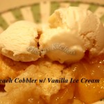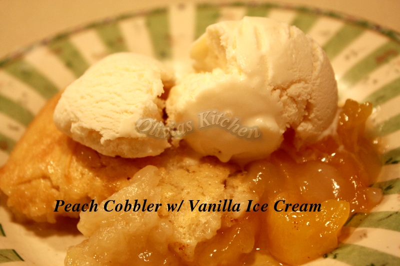 Never had a peach cobbler before , and lately i’ve been buying lots of peaches . I grilled them and it was delicious , last night i asked my husband if we should grill the peaches or try to make peach cobbler . He never had one either .. so he said why not trying something new . I did .. it was super easy and turned out to be delicious .. rich dessert .. and i happened to have french vanilla ice cream on hand . I made the ice cream the day before .. so it was perfect !!!