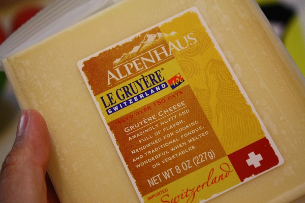 This is the gruyere cheese that i got from our local grocery store , they’re a little expensive , about $8,00 , you can always replace it with extra sharp cheddar cheese too .