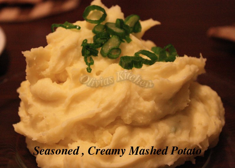 Home made mashed potato is so easy and you can season it as much as you like or just leaving it plain . All you need just potatoes , margarine , milk , salt , pepper , spices ( optional ) and you’re done ! This mashed potato in the picture , i used combination of red mashed potato and yukon gold potatoes , i diced them ,and then boil it until it’s soft , using a fork , if you can stab it with fork easily , that means it’s ready to be mashed . Drain it , return to the pot , and then add margarine , while you mashed it . If you have a hand mixer , you can use that , or you can always use a potato masher , and add milk a little at a time while you mashed it , until the consistency is reached . The rest , just up to you , you can add just salt and pepper , or add chopped green onion for a hint of it , or you can add garlic powder , onion powder . Or you can put few cloves of fresh garlic while boiling the potatoes and mash them all together , for garlic mashed potato .
