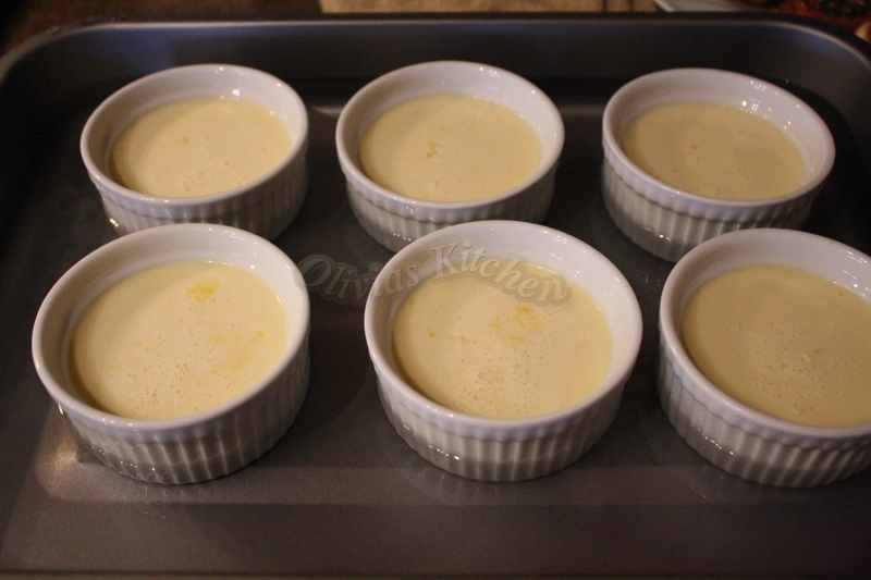 These are the ingredients for the flan , mix them all together with a blender , or mixer , remove the foam from the custard mixture before pouring them into the prepared ramekins .