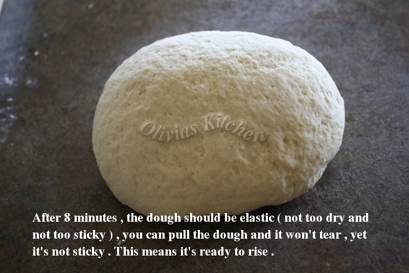 10. After kneading it for 8 minutes ,ย your dough should be elastic . It’s not too dry , but not too sticky either , you should be able to pull the dough gently and won’t tear , and yet , it doesn’t stick to your finger . It’s elastic .