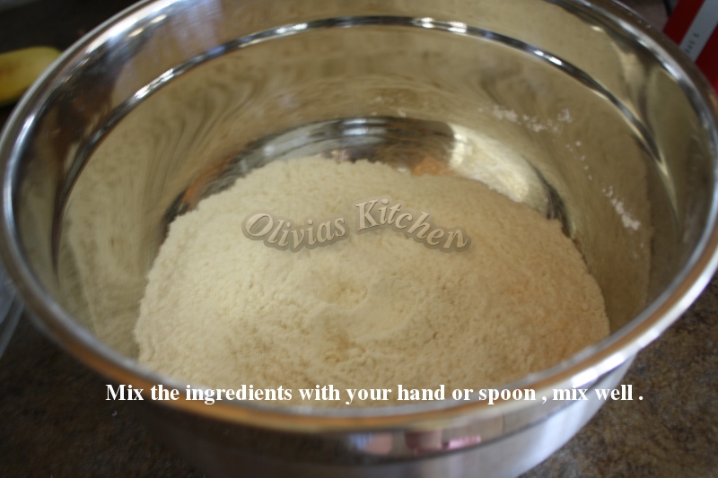 2.Mix the ingredients with your hands or spoon . Mix well .