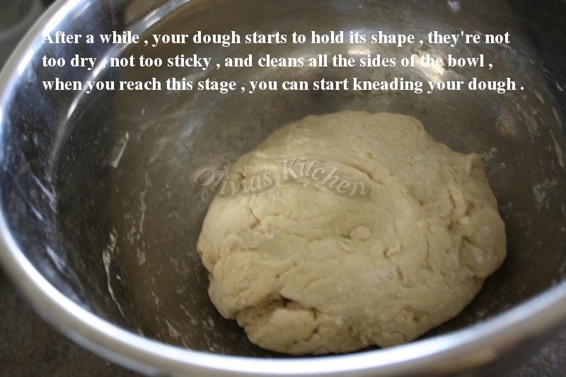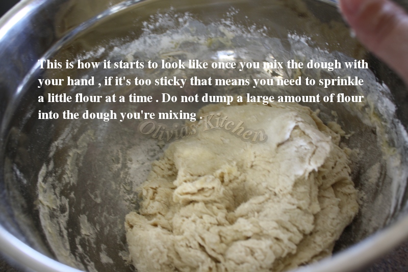 7. When you mix the dough with your hand in that bowl , you probably have to add more flour , add little at a time , don’t dump a large amount into the dough just because it’s so sticky , remember add little at a time , until the dough is not too sticky , but not too dry either . If you add too much , the dough will become too dry and your bread won’t be good . Keep adding as you need it while you mix / knead the dough with your hand .