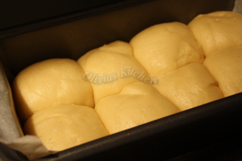 Since i am not using all the dough for this , i am planning to save it to make regular sweet bread , without any filling . I ended up using it for pull apart sweet bread , and here it is .. before being baked .