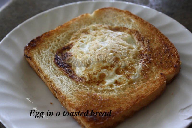 I’ve mentioned before that we love eggs ! We cook eggs for breakfast most of mornings , whether it’s boiled , soft or hard , scrambled , or baked , whatever , we cook lots of eggs ! So this morning , i tried to think a new way how to cook the eggs , my son is in his summer break , and he said scrambled eggs is fine , but i thought .. why not trying to make something different . I came up with the idea , of egg in toasted bread , except , everything has to be cooked on the skillet , instead of toasting the bread in the toaster . It’s not hard at all , just make sure you make a hole in the middle of the bread , not too big , because you will end up having to use 2 eggs , like i did this morning LOL .