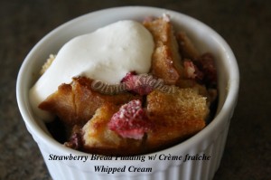 Strawberry Bread Pudding with crème fraîche whipped cream