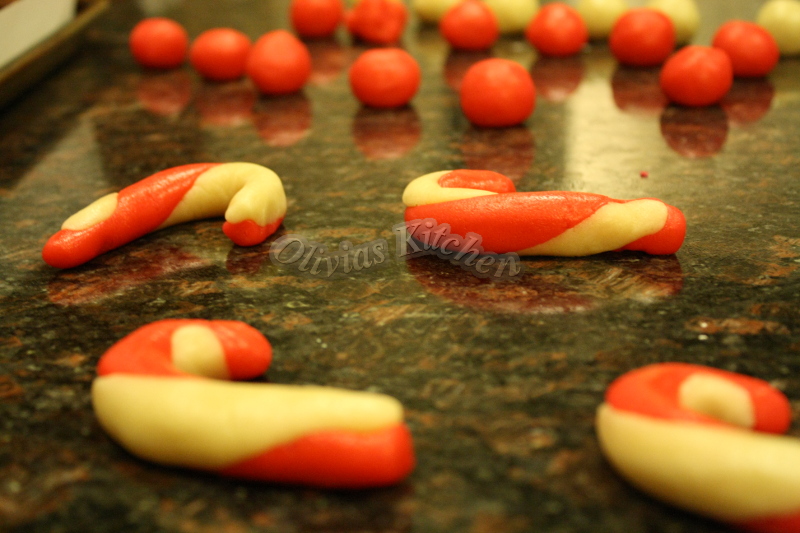 Anyway we’re going to start this time with candy cane cookies . They have peppermint taste in it , and they’re so adorable . Was very fun making them , my 8 years old son , helped me in the kitchen with this , by rolling them into a ball . They have a really bright colors , i just wish that they hold its shape when being baked instead of getting a little flat when it’s done baking .
