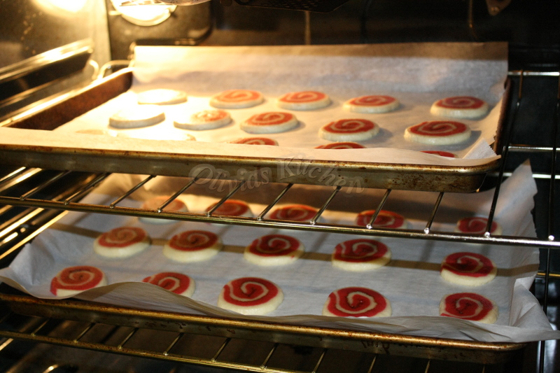 Few days ago i checked my mailbox and there it was the cooking magazine , went through it right away . And soon , one cookie caught my eyes .. it’s cute , red and white pinwheel . I’ve heard about pinwheel , in fact , i had some recipes for it from my other cookbooks , but i never really give the effort to try , or not even tempted , maybe because there was no picture in previous books . Though i can picture it from my mind , but it’s always better when recipe comes with pictures , am i right ?