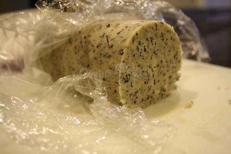 I found this recipe online , it’s actually called Earl Grey Shortbread Cookies. I love shortbread cookies , but it gets boring if it’s only butter and nothing else . So this recipe calls to use loose leaves tea . And i happened to be Earl Grey’s biggest fan . I love earl tea , although lately i have been drinking more coffee , but i am more a tea drinker , and earl grey is on the top of my list . So i thought , this cookie might not be too bad . They’re easy to make , as long as you have food processor , or else you’ll have a little problem with the loose tea leaves . The blade in the food processor helps to chop up the tea leaves into very small , almost like tiny speck on the cookies .