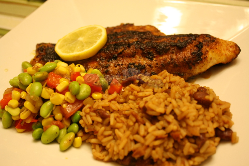 I served this with blackened catfish , the recipe for the blackened seasoning is here .