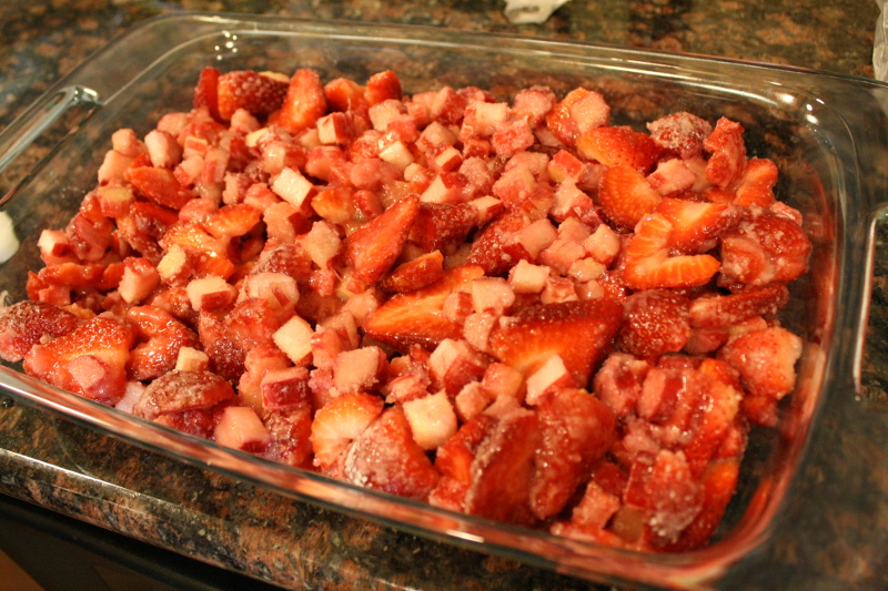 I had never tried rhubarb before . From what i heard they go great when cooked with strawberry , and people said it has quite similar taste with strawberry . So it is full spring down south , and i figured it should be easy to find rhubarb , and it should be widely available . So yesterday when i went grocery shopping , my eyes was set to find rhubarb . I found them , those long red stalk , not to be mistaken with swiss chard by the way 🙂 But it happened , when i was about to pay for my grocery , the girl didn’t know it was rhubarb , she thought it was swiss chard . I should have said yes , because i would have been getting a lot cheaper price as a chard than a rhubarb . They cost me $6.99/lb , i don’t know if this is normal price or considered quite high . I highly pay that kind of price of vegetables or fruits .. i thought it was expensive . The strawberry on the other hand was quite cheap , it was about $2.00 for a pound .