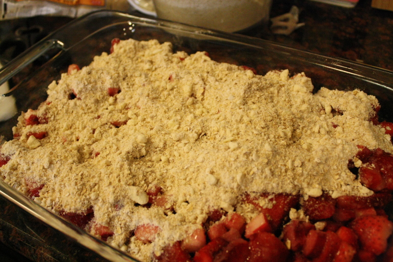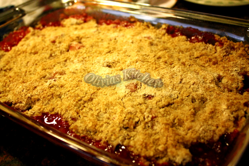 My husband’s grandpa loved rhubarb , my husband never had rhubarb . So we both were excited to try it . The recipe doesn’t call too many ingredients , lots of strawberries and rhubarbs , oatmeals , sugar , flour and brown sugar , butter and all you’re all set to make a yummy delicious crunch .. or should i call it crisp ? I love this dessert , perfect amount of sweetness and tart . And i happened to make my home made french vanilla ice cream the day before , what a perfect combination !!