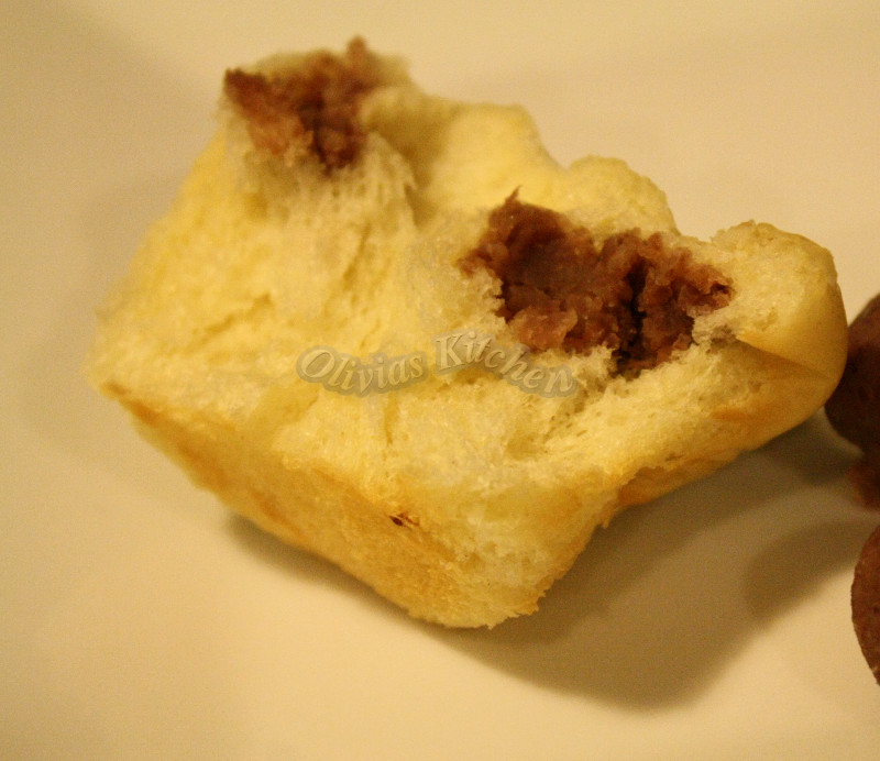 This was my experiment with the bread , using bean paste as its filling , it is good , except next time i need to be less stingy using the paste as its filling 🙂 Would have been so much better if i had put more !