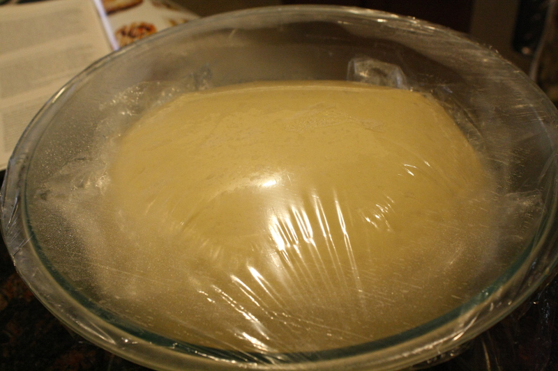 Then i had to deflate the dough , don’t punch it down . Just take it out and start kneading few more times to let the air out . Then i had to cover it with buttered plastic wrap , and let it proof overnight in the fridge .