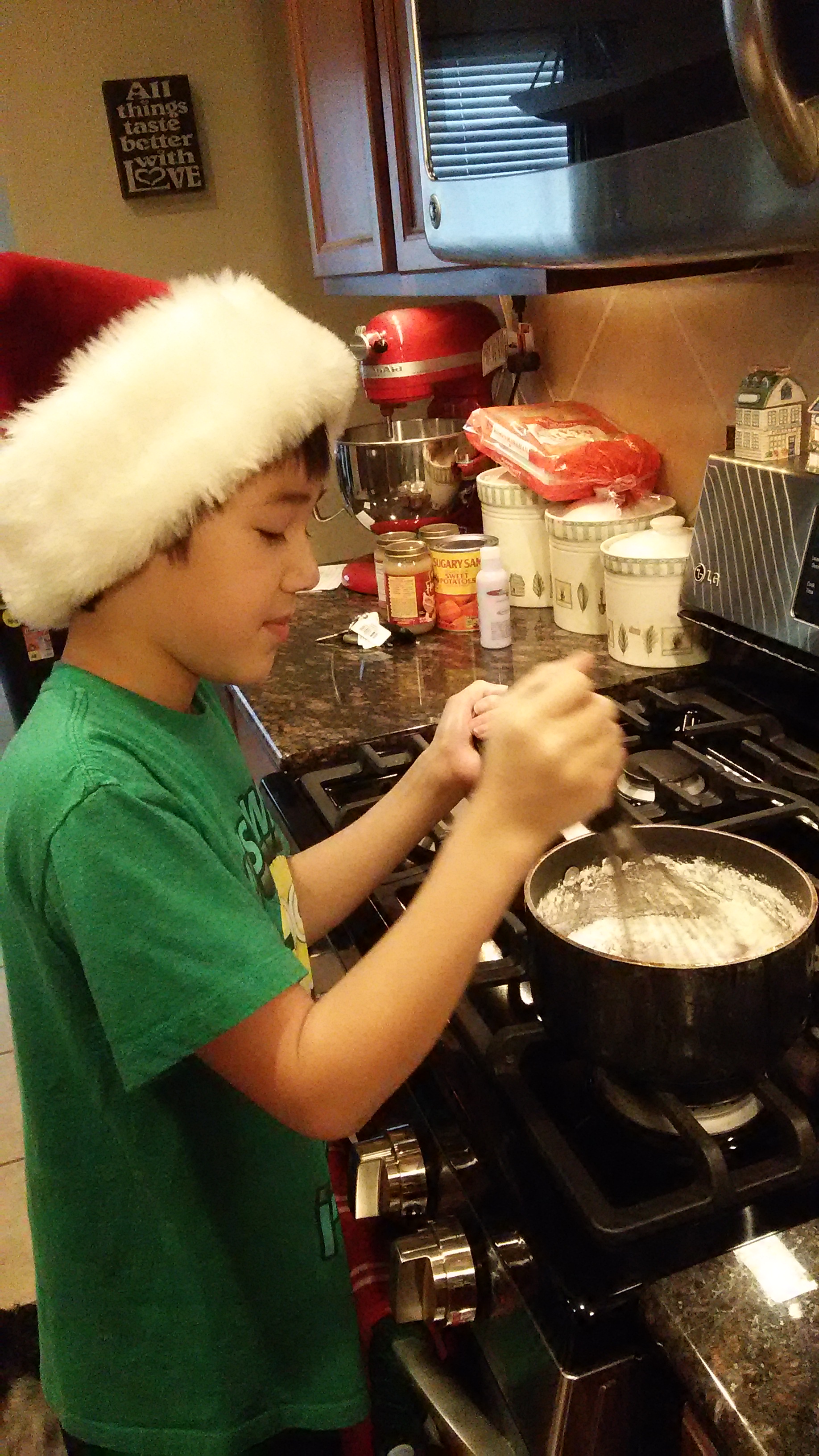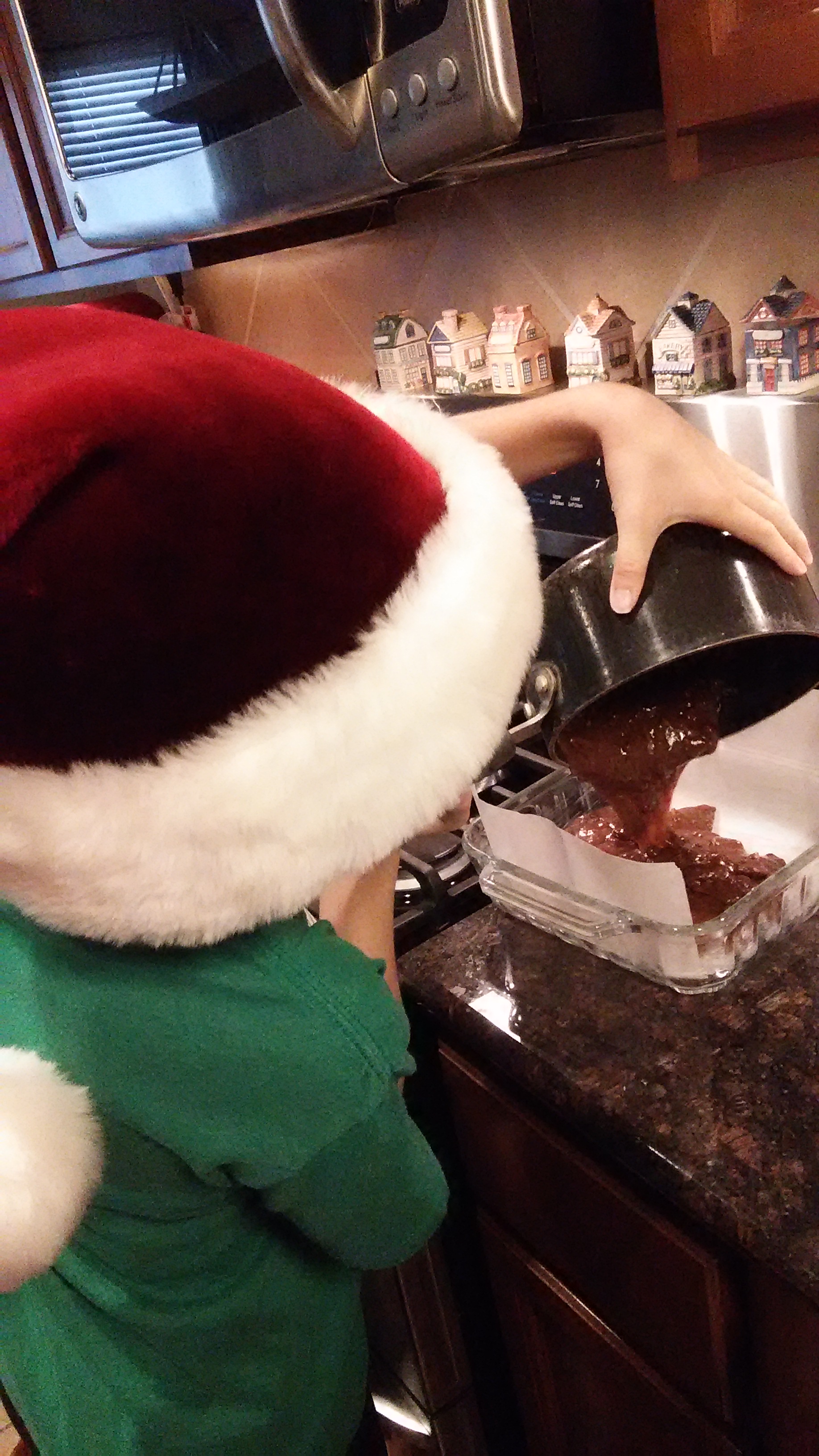 But anyway , to make up for it , that Christmas Eve morning , after coming home from working out , i told my son , who just turned 10 years old that he should pick out a recipe from this christmas baking book , and i will help him to bake it . He chose brownies recipe , maybe because it’s the first recipe on the first page or whatever his reason was .. he picked that one . Okay .. great no cookies , less mess , quick to make .