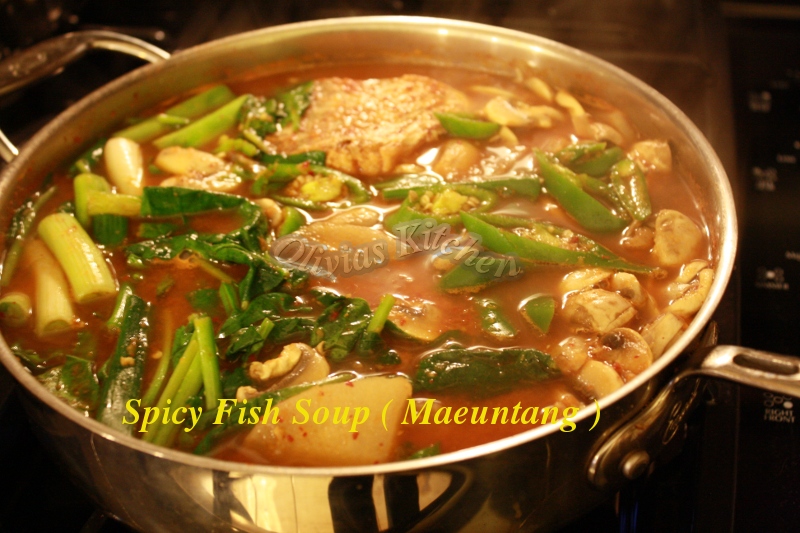I was going to blog about this couple of days ago since , the soup was made few days ago , but i kept forgetting about it . But this was about the fish soup , korean spicy fish soup . Bought red snapper , that was already cleaned and gutted by the fish monger , which was excellent , meaning i don’t have to make a mess in my kitchen , i don’t have to look around if there is any flying scale , or scale landing on my hair .. eww .. yes .. gross .. I love fish , but it’s just scaling the fish was the job that i object to do , not that i have any other choice , well except the fish monger will clean it .