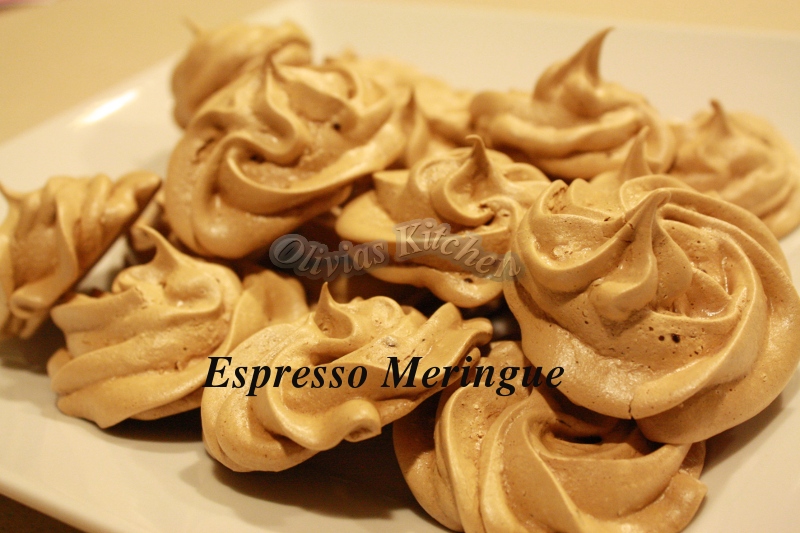 Made these meringues few times already , so easy yet so yummy . Most of the time i only have 2-3 pieces of them just because they’re sweet , i guess that’s why it’s called meringue !! I love this kind though because it has espresso in there , i used instant espresso , and since i loved mocha / coffee stuff .. this becomes my preference compared to regular meringue which nothing but sweet . Nick also loves this ,he requested it few times already for me to make them . Anyway .. make sure your oven is in the low temperature , and after finished baking them , do not open the door and let it sit for 2 hours , so it will get done and crunchy , or else u’ll get a sticky meringue !