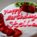 Made this birthday cake for our neighbour the other day . Originally i was going to make chocolate cake , but obviously i changed my mind at the last minute . Ended up with making strawberry cake , just 2 layers of strawberry cake , with dark chocolate icing in between , and then white chocolate whipped cream on the icing all over the cake . I have to say that i never worked on whipped cream icing , i usually just use french butter cream icing , or chocolate ganache icing . Doesn’t mean i never used whipped cream , i’ve used it for cakes few times , but i never had so much problem with whipped cream icing like this one last night . I got to the point where i thought it wasn’t going to work at all . But i am glad it worked just fine .