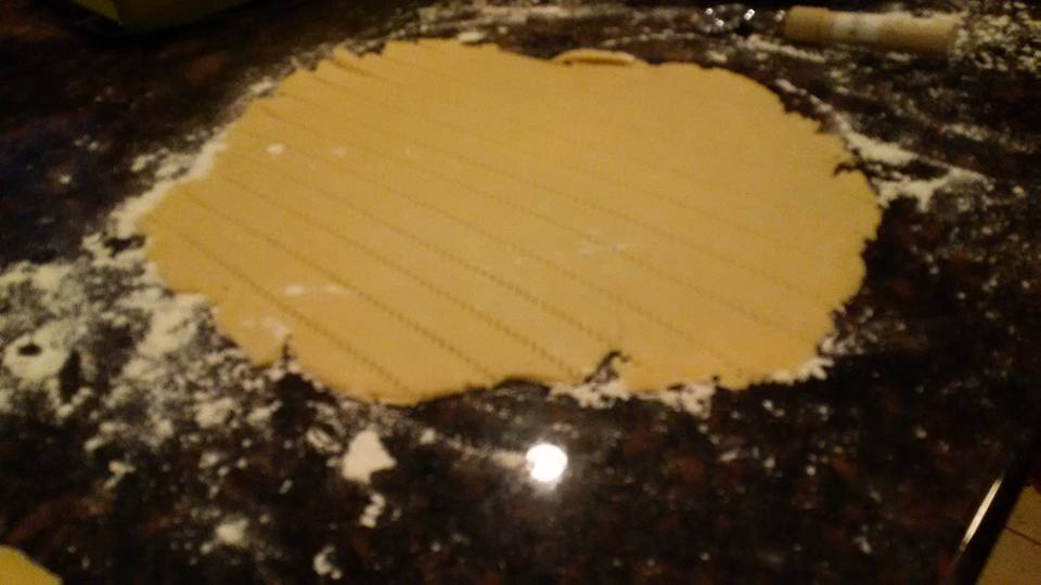 4. Now , roll out the 2nd pie dough , and using knife , or decorative cutter , cut an even number , i did 12 i think or maybe 10 . You can skip this step if you don’t want lattice top , just roll out the dough and place it on top and make slits here and there . This is for lattice topping