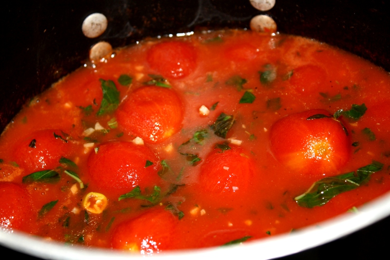 This time i only used simple tomato sauce , seafood adds so much flavour in food , and normally i would use roasted garlic pasta sauce , but not this time , simple tomato sauce would taste so much better . I was right !! The sauce was so easy to make , as long as you have garlic and plum tomatoes , and few italian herbs on hand i think u’ll set to go . So here we go ..