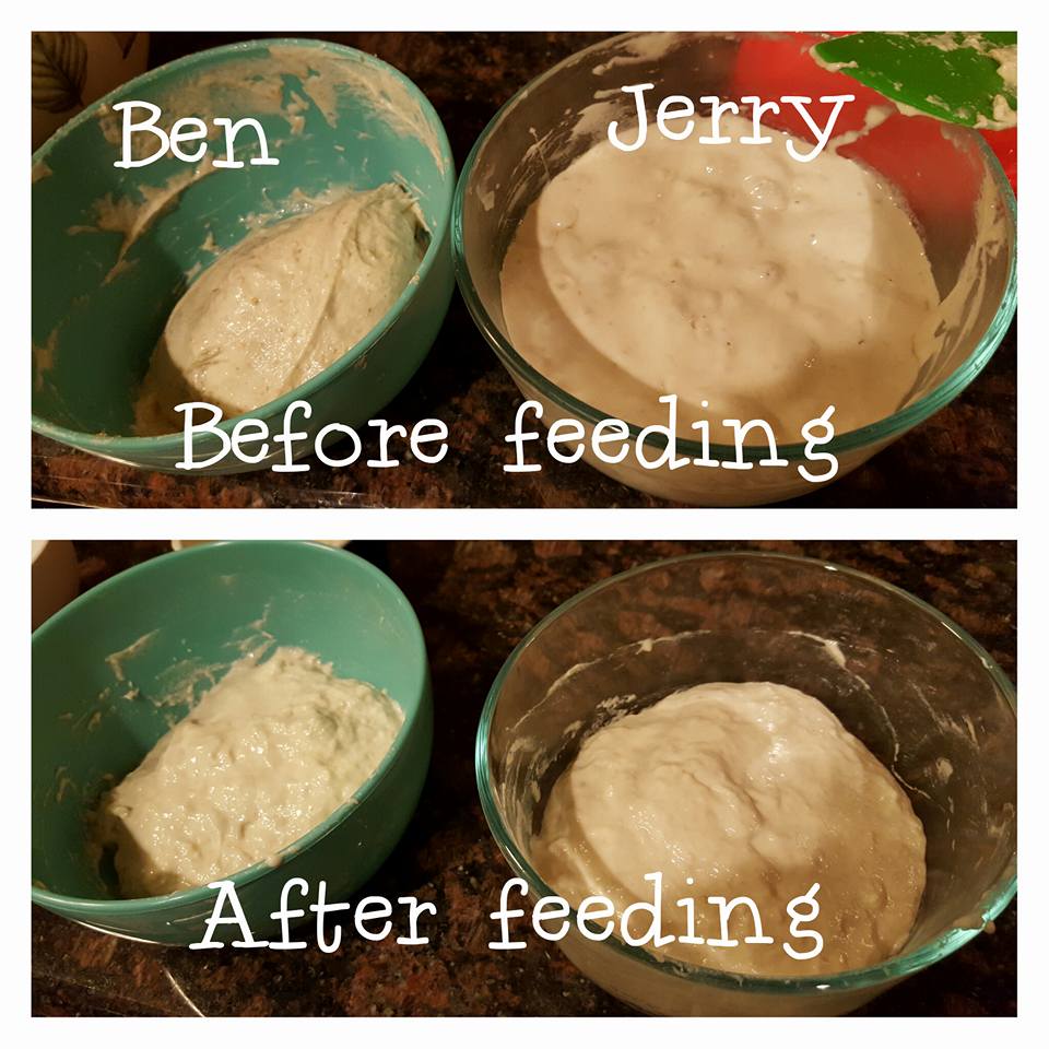 So what do we do with the rest of the starter ? Well i put them all in the fridge , Ben and Jerry , that’s what i call those 2 seeds in different bowls .