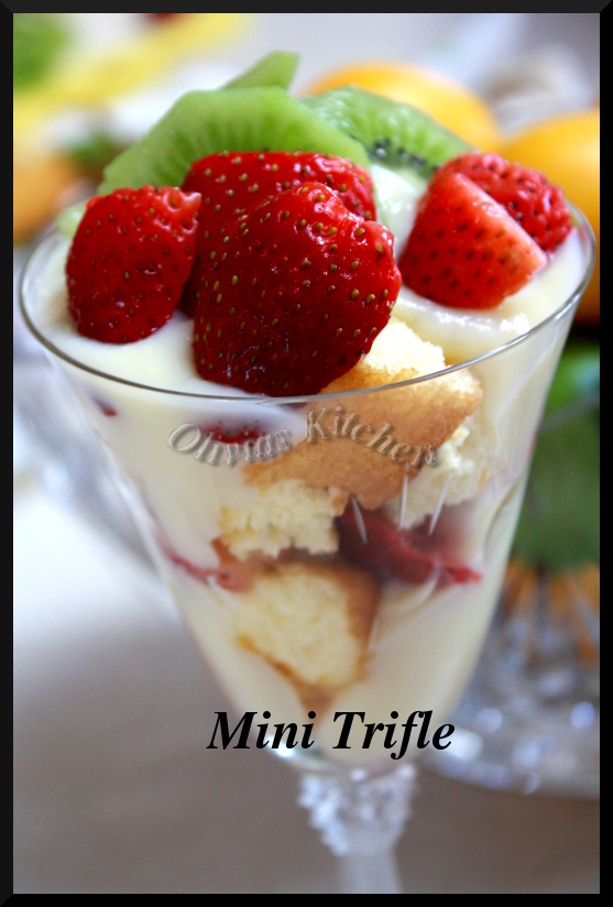 So , everybody can make this , i use the pretty glass for this , just pull apart the shortcake or even angel food cake from store would work just fine , pound cake will work too and then add the custard , the fruits , i used strawberries and kiwi , and then top it with more shortcake , and the custard and fruits , until you reach the top of your glass . Easy enough .. and yummy !!