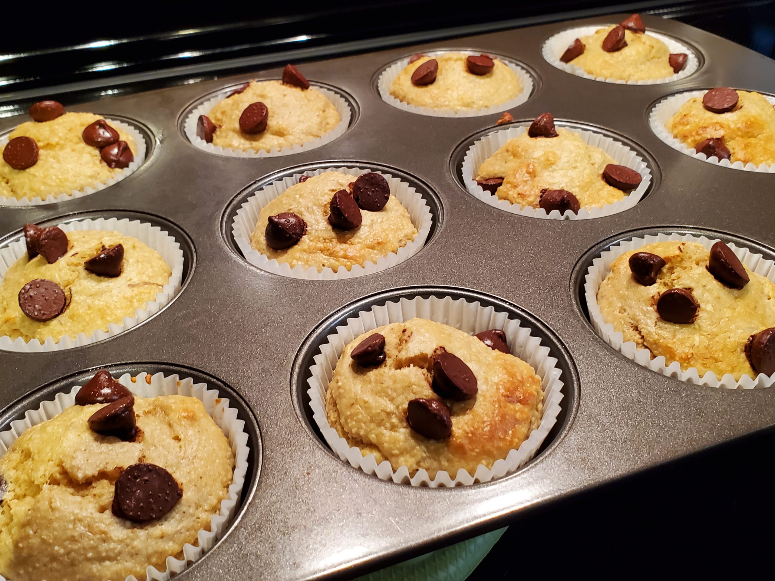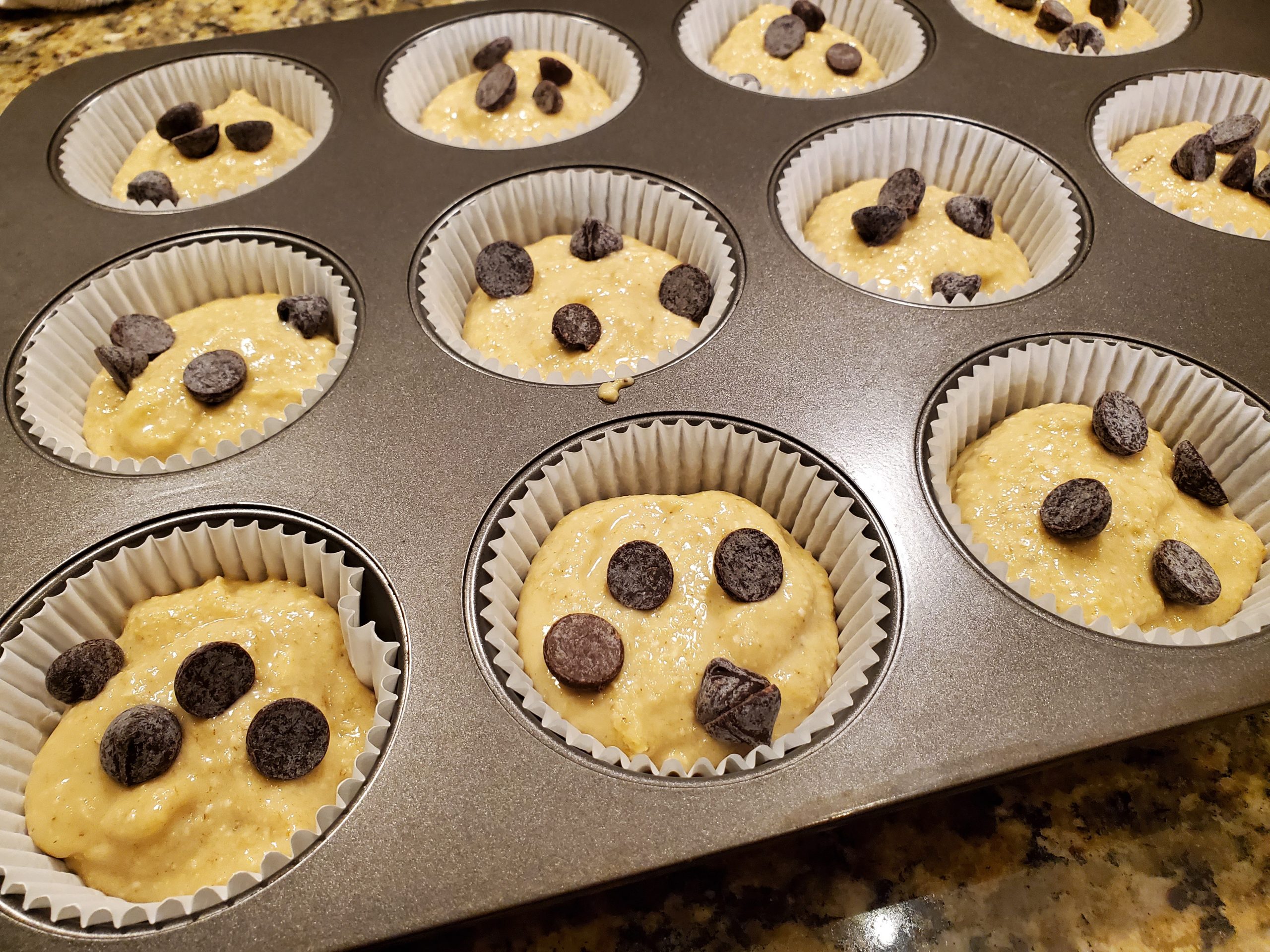 No special equipment needed either , no mixer ? No problem . I don’t use it either , I just use whisk . The magic bullet is kinda a must or food processor might do it too . Otherwise it’ll be hard to grind up oats unless you buy the oat flour . Which kinda defeat the purpose in trying to make this recipe as simple and $$ saving as possible . You’ll need muffin liner n pan too . If you don’t have liner , use spray . I like the liner , less mess .