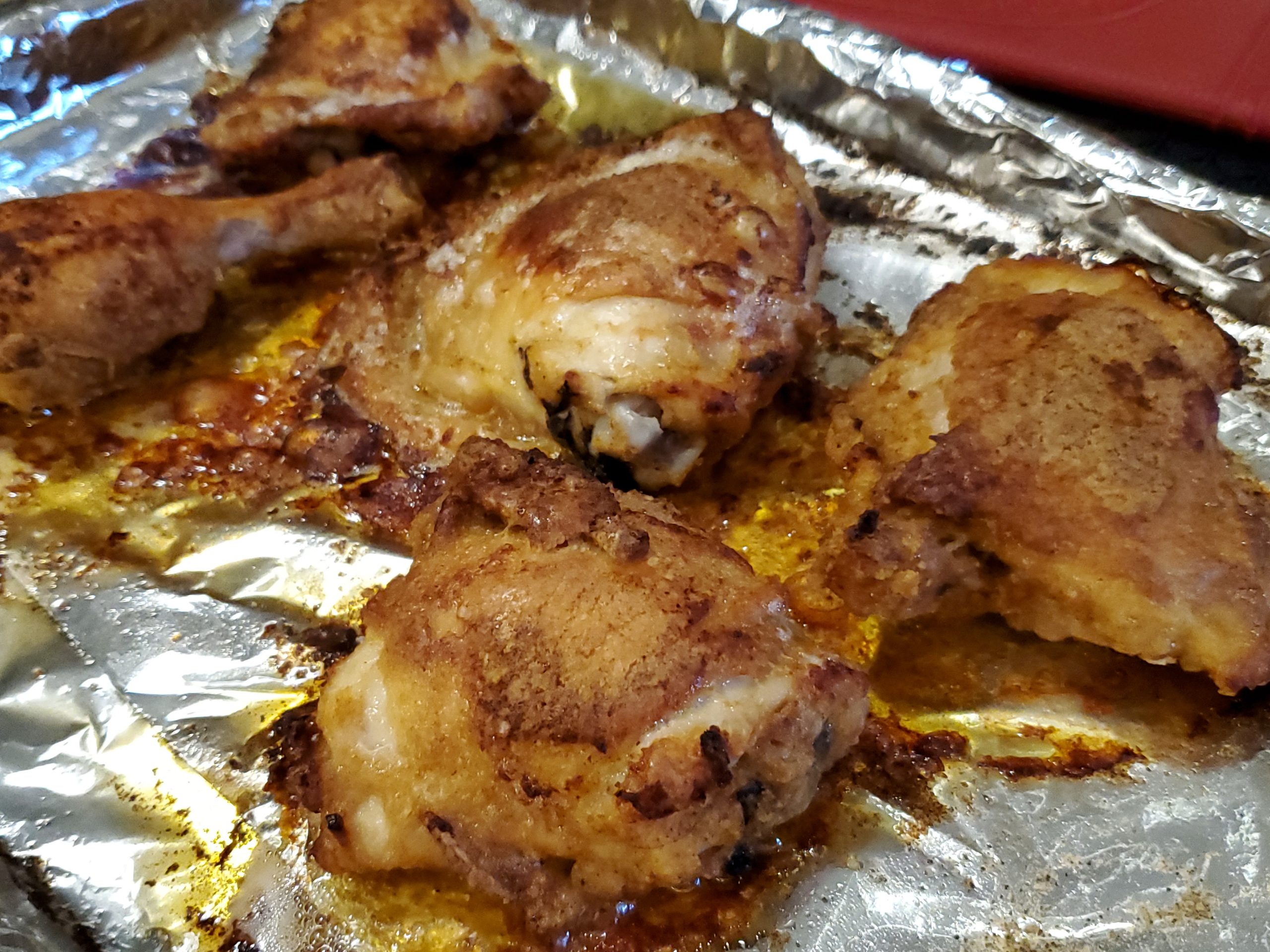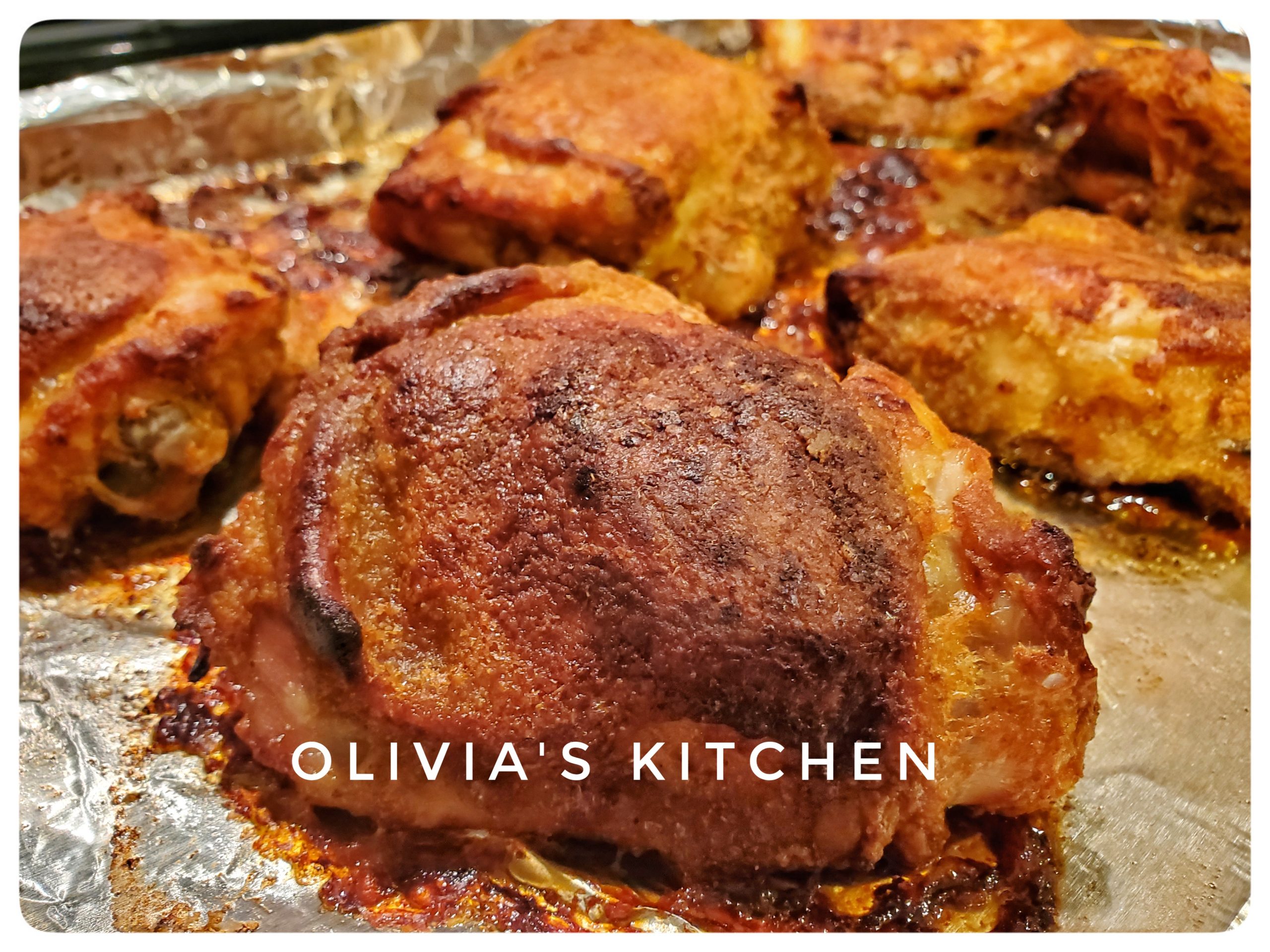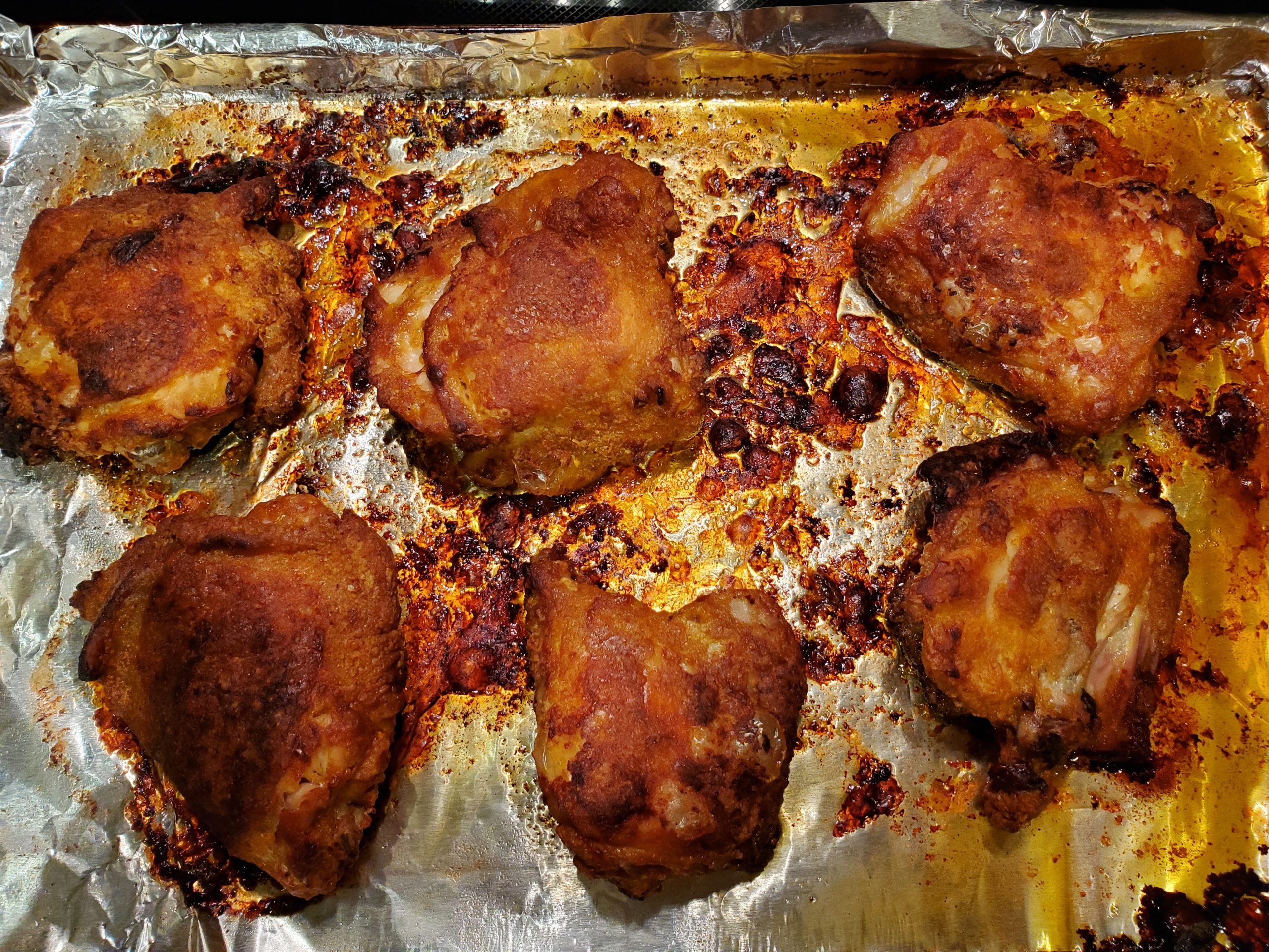 - 6 pieces of chicken thighs or whatever cut you like . We love dark meat for this