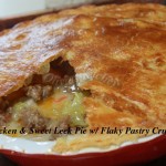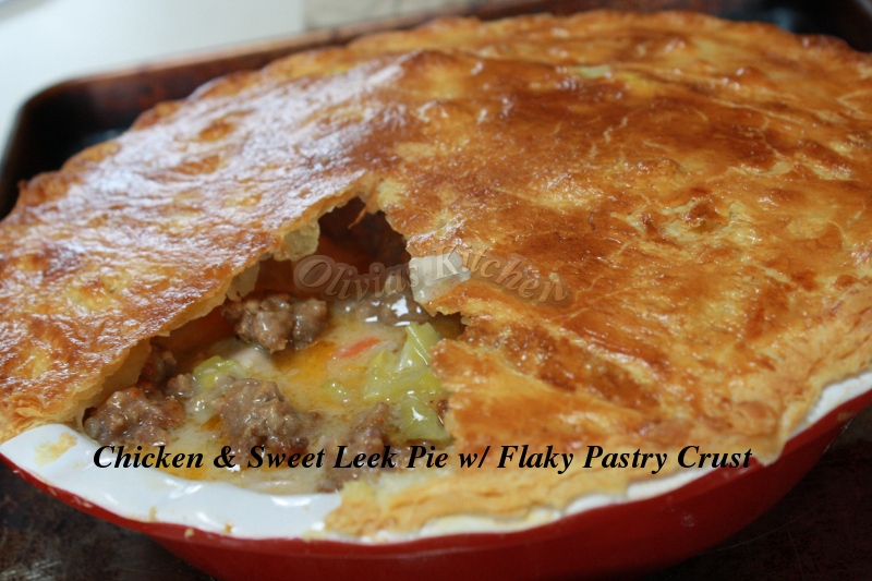 Anyway , chicken and sweet leek pie took about probably an hour and a half including the preparation ( it would have been quicker to use boneless meat as i mentioned before ) . The result though was a very delicious pie , amazingly , there was barely anything there , didn’t even have to use garlic , or onion , but we used sweet leek which has better and sweeter taste than regular onion . Thyme is a must though .