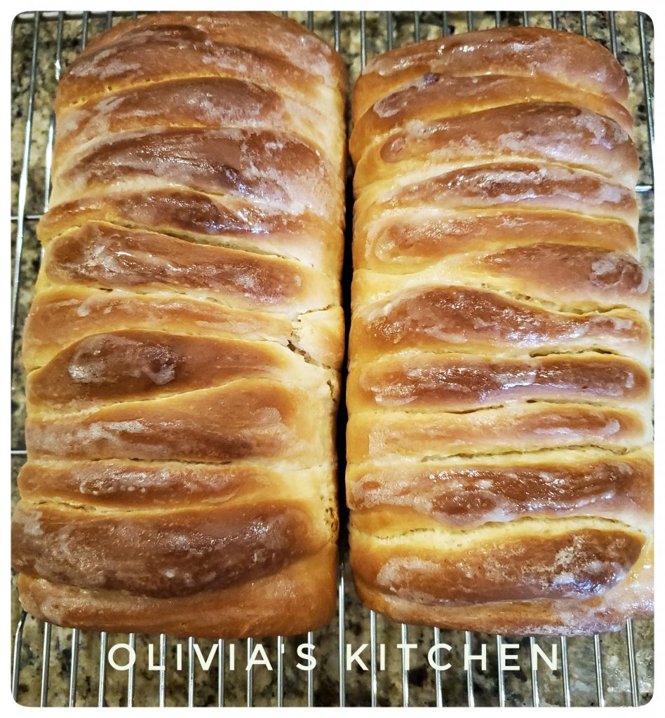 Recently i started thinking about this type of pull apart bread , i still remember how it should taste like , it was like a sweet dough base . So i decided to try it . The flavor obviously is not exactly the same , but it has the same concept , and i tried to mimic the way they put the dough together , i don’t have wide enough pan to hold this . The first attempt i ended up putting all the dough in 1 loaf pan and didn’t turn out so well , they rose too much in the oven and it’s like an exploding accordion . The second time i thought about it and decide to weigh by grams and then putting them in 2 loaves . Super easy to make and it’s soft and sweet .