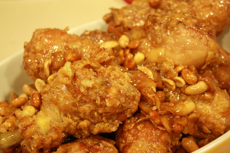 This has become of our favorite dish too . This morning i decided to make this sweet and crispy korean fried chicken . They’re easy to make , except it takes time to deep fry them . And plus you have re-fry them again to guarantee the crispiness of the chicken . Other than that , it’s pretty easy and delicious . The sliced ginger in the sauce turns out to be like a candy by the time the sauce is caramelized . Make sure do not over cook the sauce , or else the sauce not only caramelized , but it’ll get tough and break your teeth LOL ..