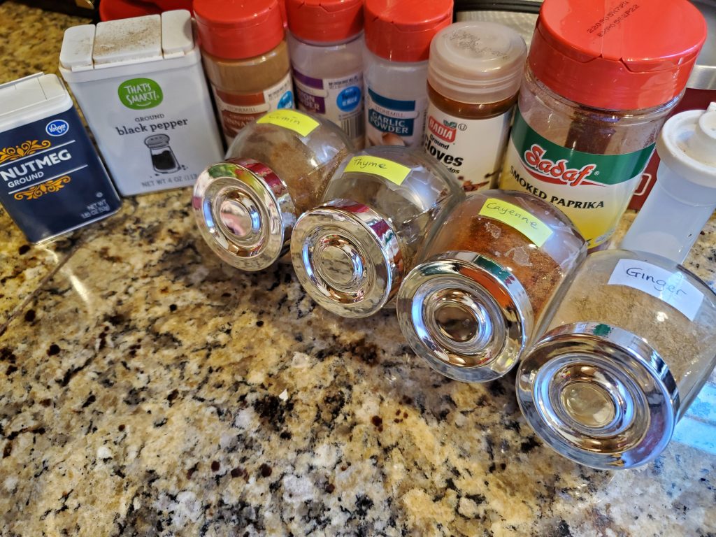 - 1 tsp ground allspice ( i used 1/2 tsp cinnamon , 1/4 tsp ginger and 1/4 tsp cloves )