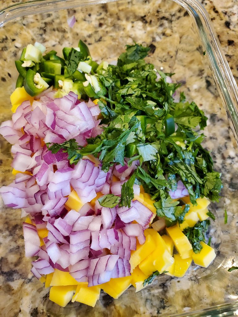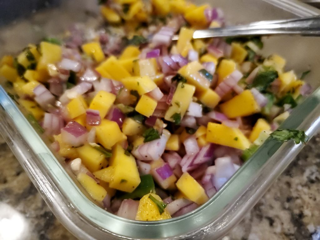 - Assemble your taco , and top with some salsa , i like to use this mango salsa . Recipe below