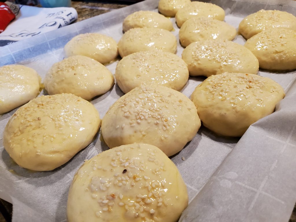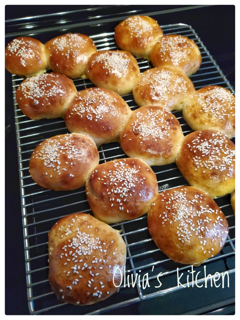 I had the intention to make sliders , using the hamburger buns recipe i have , so i weighed them about 48 grams , and i guess that was still a bit too big , because the sliders look more like a generic hamburger buns you get from the store LOL . I think next time , i will weigh it 35 grams , and it should be good size . You want to make it easy ? Just buy it from the store , or make it , whatever suits you . If you want to try making it yourself , just go check the hamburger buns recipe . Same exact recipe , just weigh it less than when you make hamburger buns .