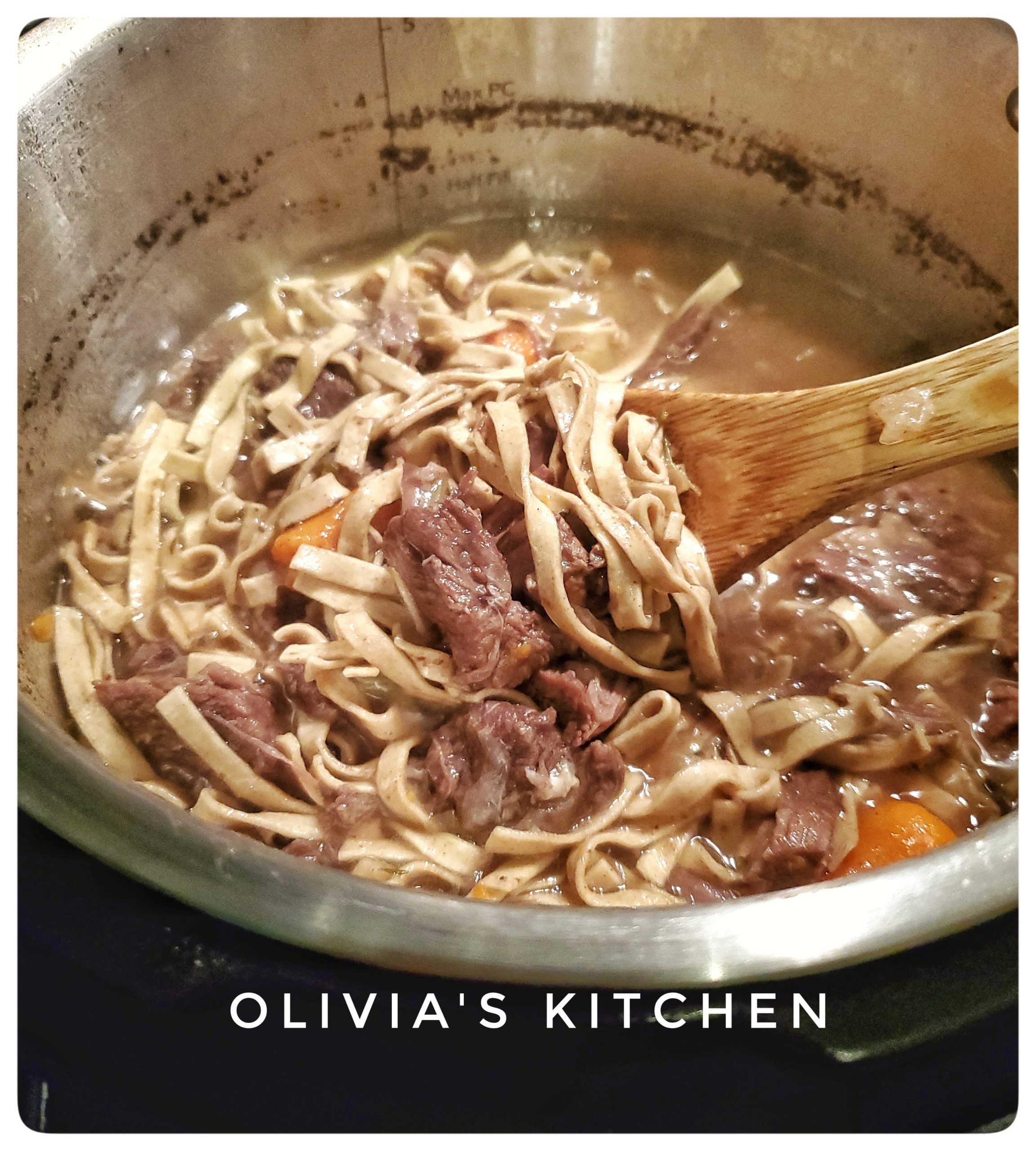So anyway , i have my old recipe of the Amish Beef and Noodles , and i am just going to update a little bit in this entry . The original older recipe has the recipe for homemade noodles too if you’re interested in it . Otherwise , you can always use store bought egg noodles , or those specialty noodles that Aldi sells ( mushrooms noodles etc ) . If you’re feeling like all 100% homemade , just check the link above .