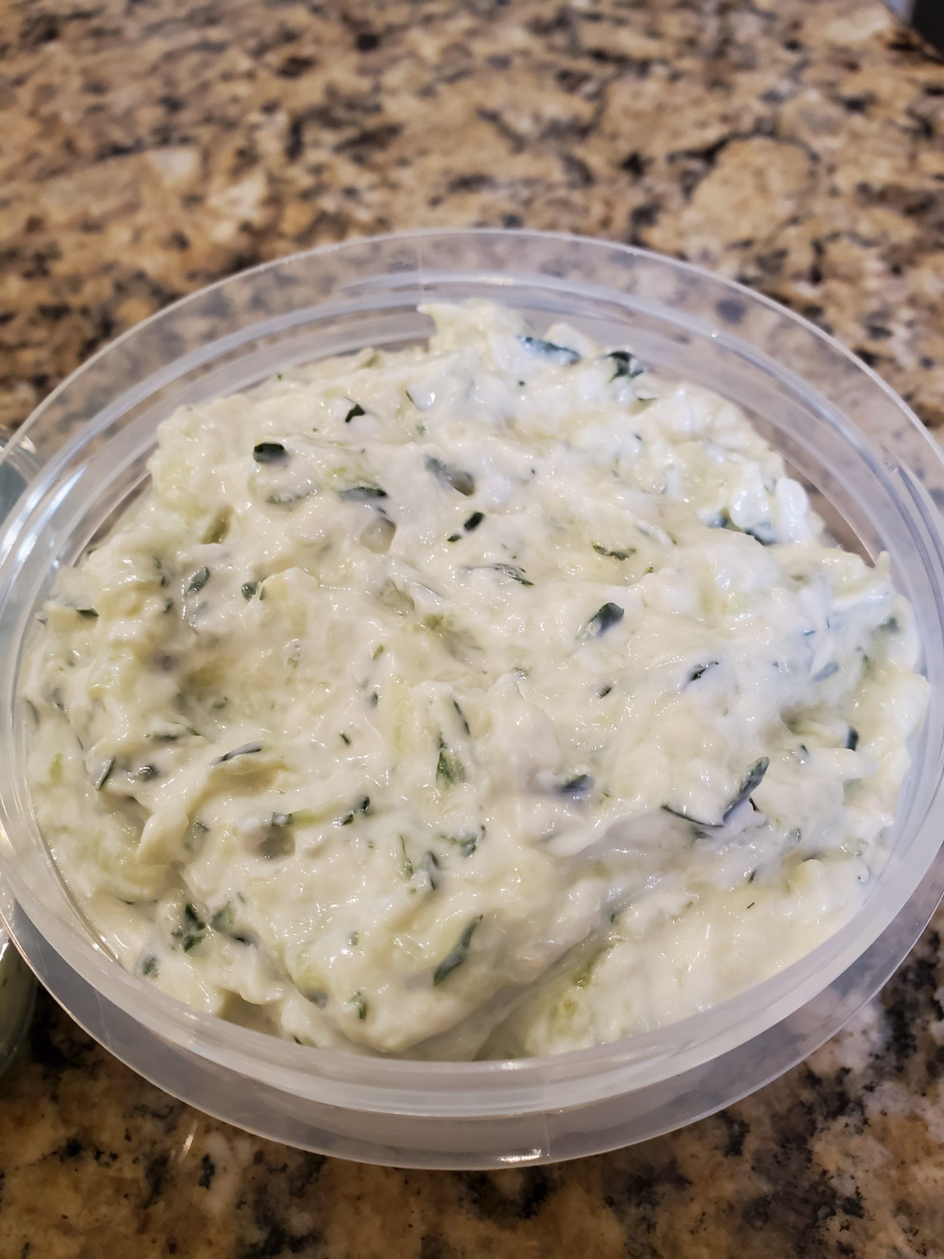 - 2 medium cucumbers , grated , then squeezed and drained , get rid of the water as much as possible