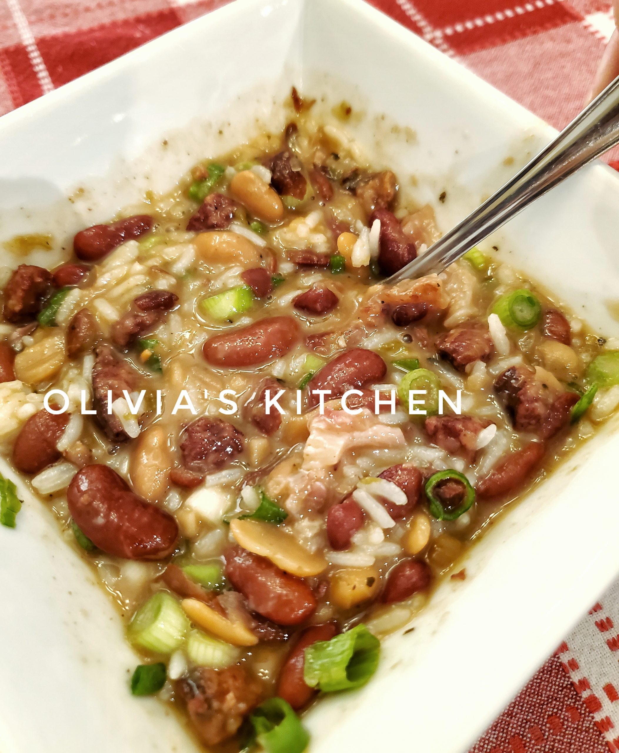 - Serve the red beans with rice in a bowl and mix . Top with chopped green onions and mix !