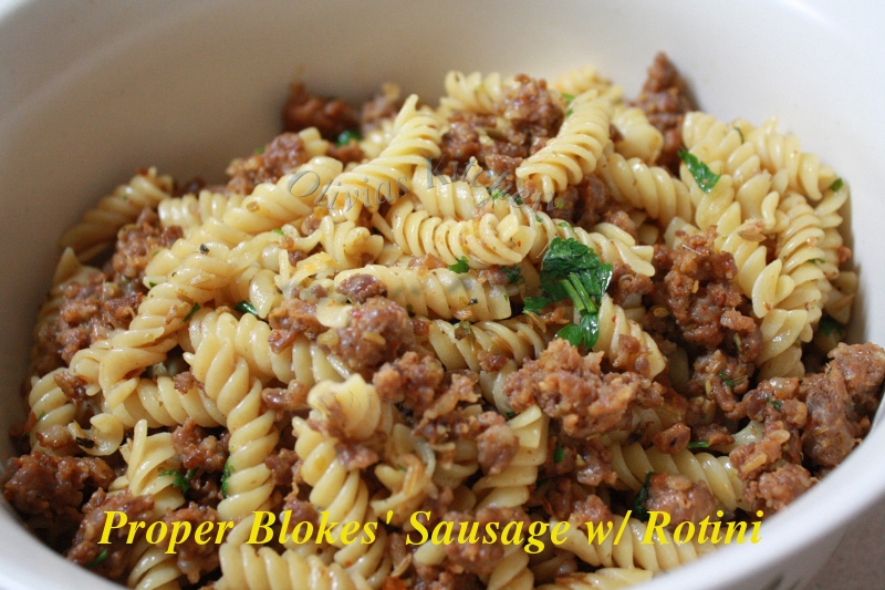 In a skillet , heat the olive oil , crumble the sausage , and brown them , add the spices , and cook 5 minutes longer to caramelize them . Add a glass of white wine , and oregano, until it reduced into half , add lemon zest , lemon juice . Then add the pasta ( cook them according to direction , keep about 1/2 cup of starch water , u might need it later ) , mix well , add butter , parmesan cheese and parsley . Serve immediately .